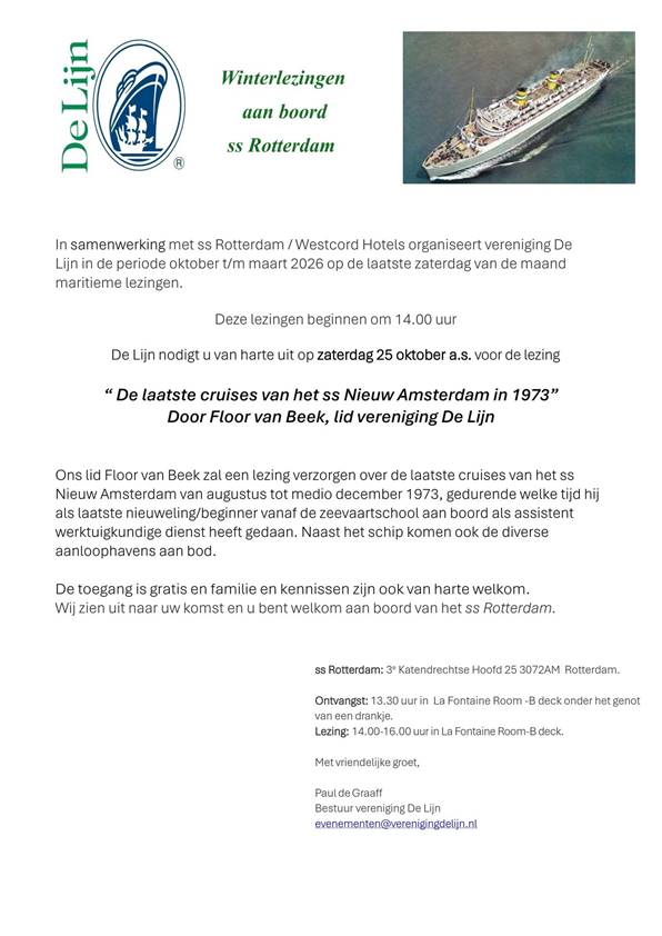 “de laatste cruises van het s.s. Nieuw Amsterdam in 1973”, door Floor van Beek